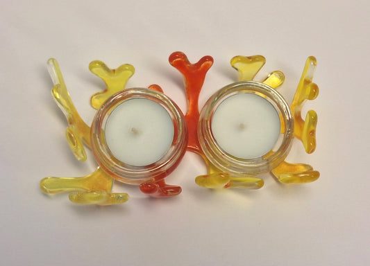 Handgjord Värmeljusstake av Glas-Orange och Gul