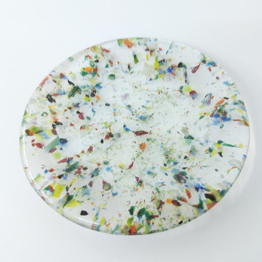 Handgjord Värmesljustake av Glas (Större Model) - Genomskinlig med Flerfärgat Glasskross Runt Kanten